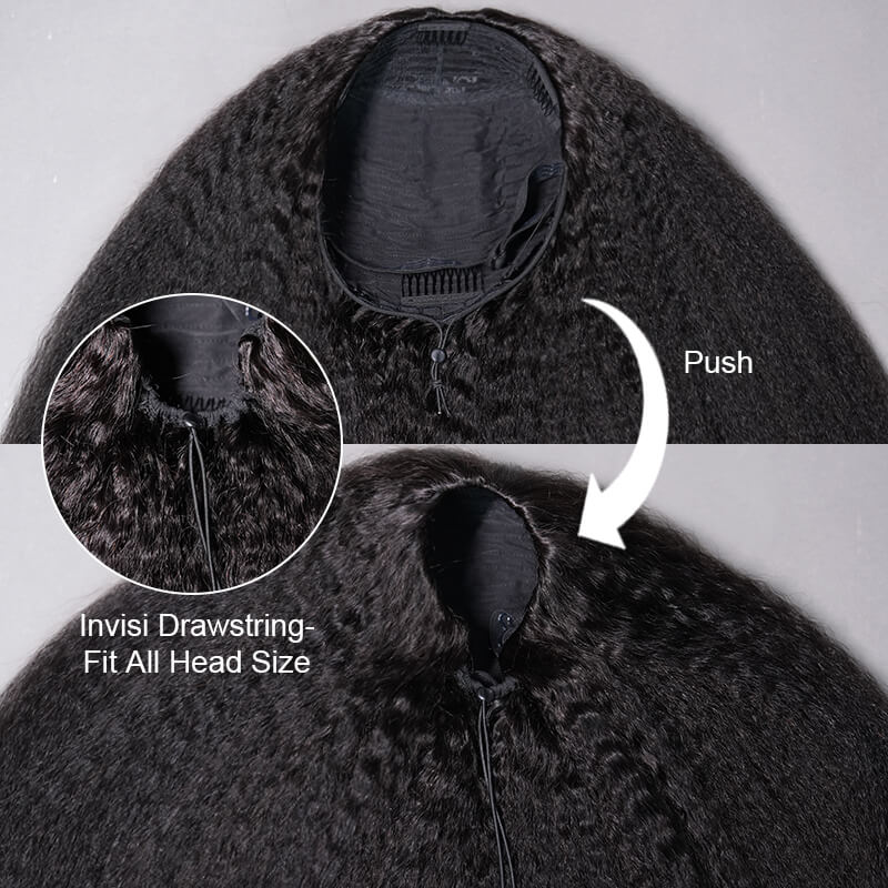 Kinky Straight Flip Over Half Wig Invisi Drawstring Glueless Put On And Go Wig Flash Sale